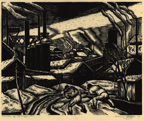 Only 200 copies of the Portfolio were produced. The FDR Library has a complete set, consisting of 50 hand-colored woodblock prints. Four of these prints are displayed here.