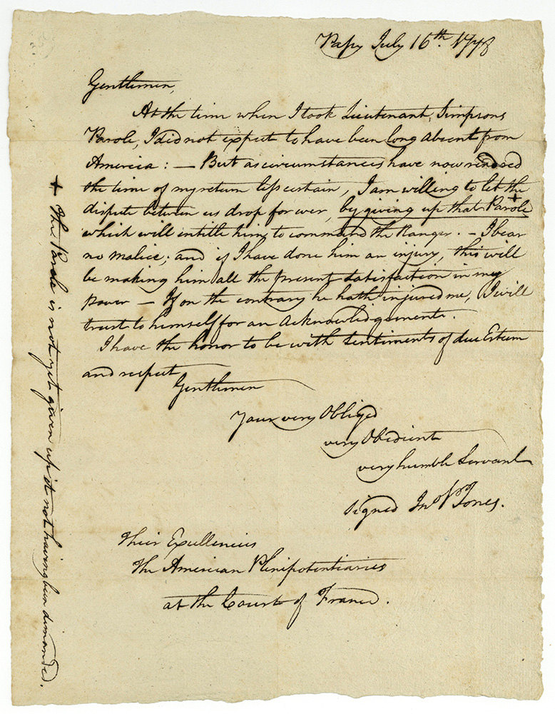 Young Franklin was particularly inspired by the swashbuckling encounters of Captain John Paul Jones during the Revolutionary War. FDR collected more than 50 books about Jones, including a 1781 biography in French, the first to be published. There are 32 items in the John Paul Jones file, including his letter to “Their Excellencies the American Plenipotentiaries…” seeking to end his dispute with a former Lieutenant. Capt. Jones terrorized the British coastline most notably aboard the USS Bonhomme Richard while based in France.