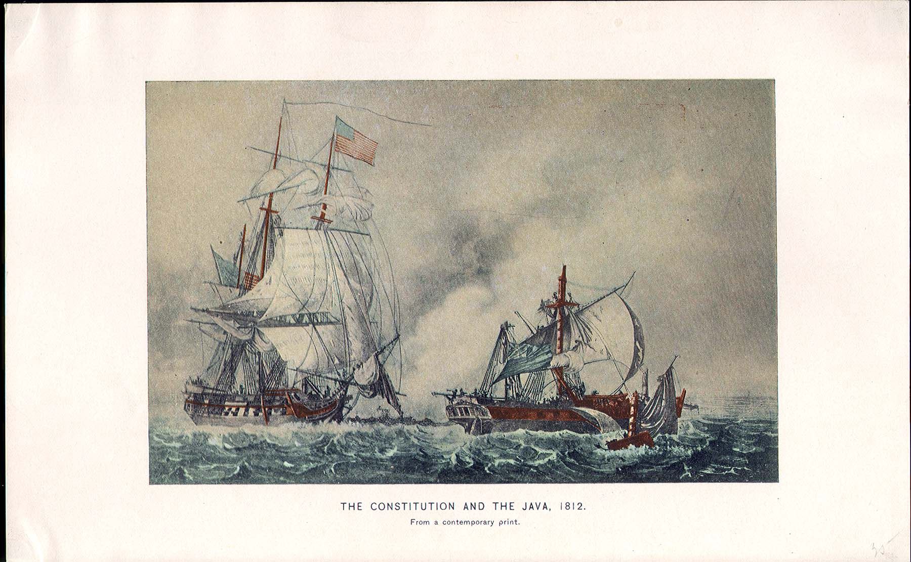 Captain Bainbridge, who had endured years of captivity at the hands of the Barbary Pirates, assumed command of the Constitution on September 8, 1812. On December 29th he engaged in another historic battle, this time with the HMS Java near San Salvador off the coast of Brazil. The Java was a powerful 46 gun frigate and the two ships traded broadsides, with the Java’s masts and rigging badly damaged and the Constitution losing its rudder. Capt. Bainbridge was severely injured but refused to give up command. During three hours of battle the Java’s main mast fell, her captain was killed and more than 100 men were wounded or died. Unable to maneuver the Java surrendered.