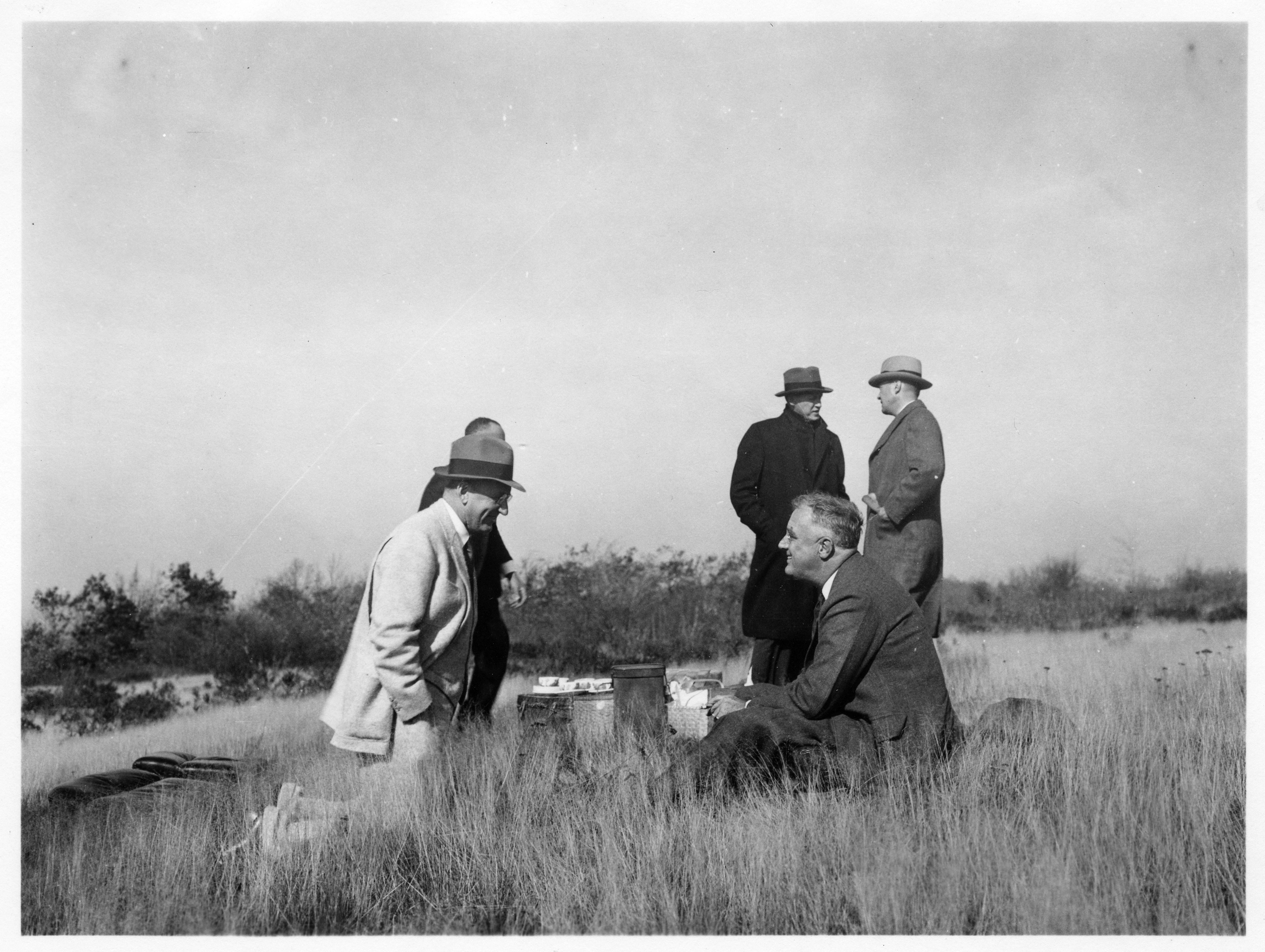 Henry Morgenthau, Jr. and FDR picnic at Sunset Hill in Pine Plains, NY. August, 1940. NPx 73-113:49